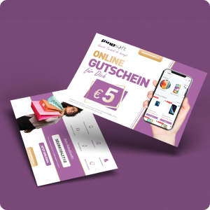 Der Flyer sollte einen Erstbestellungsrabatt mit Code beinhalten und einen weiteren Gutschein für eine Folgebestellung enthalten.